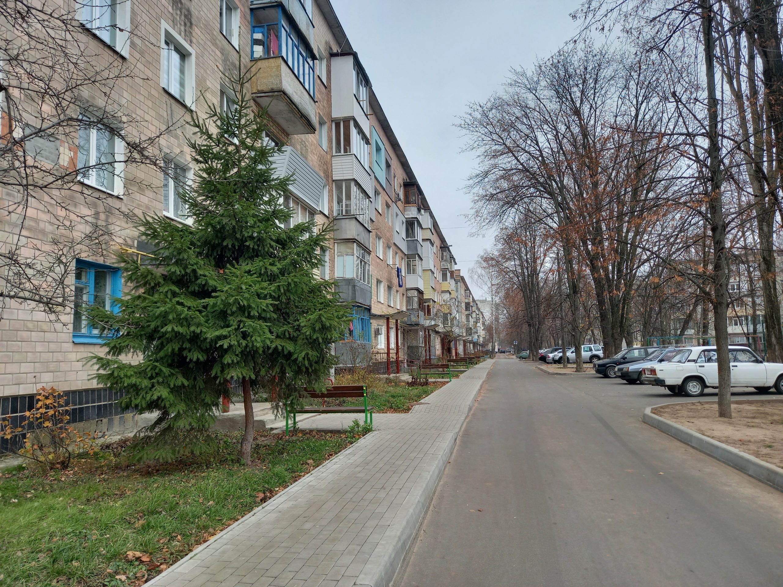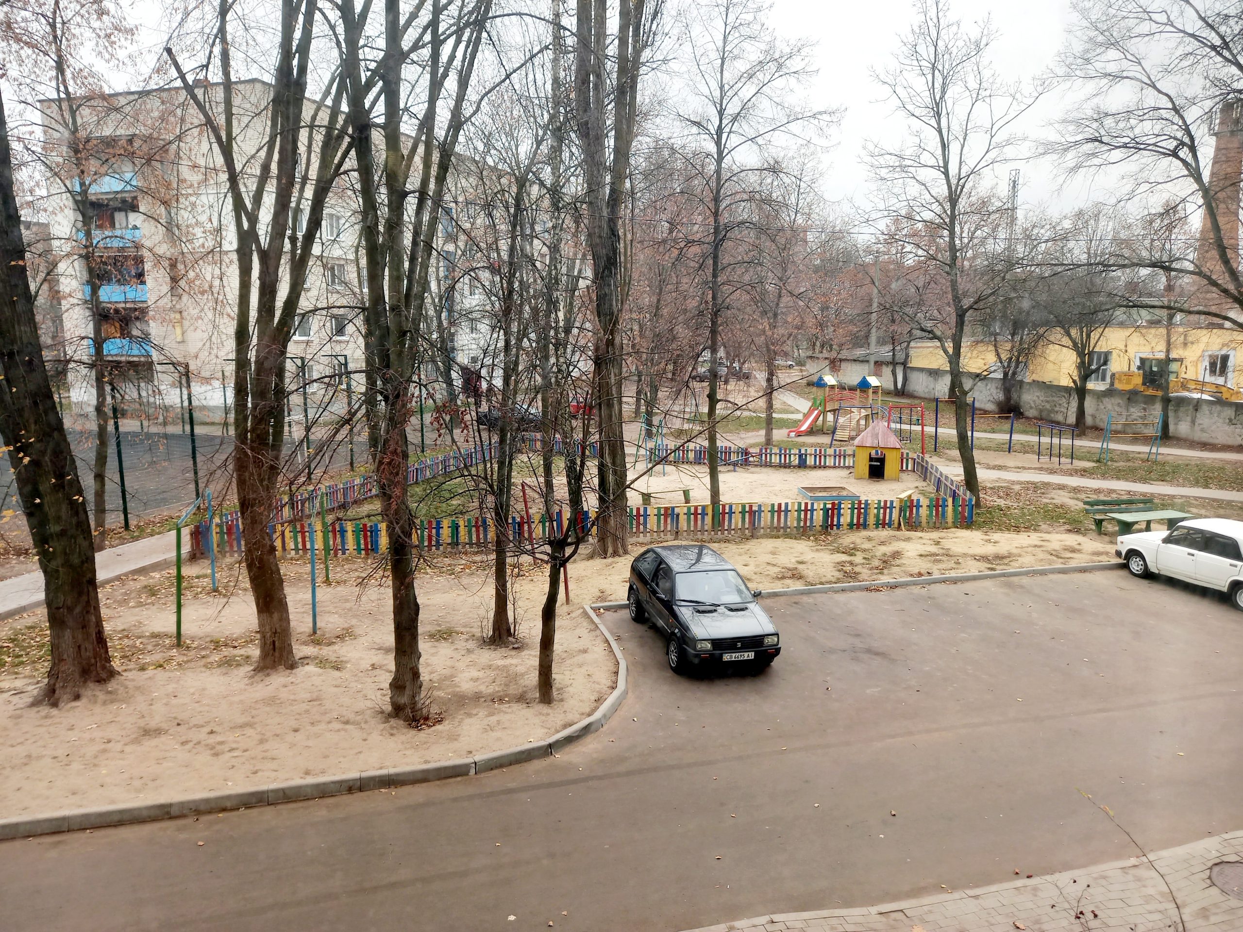 Затишний двір зі спортивним та дитячим майданчиками, виділеним місцем для паркування авто. Нові охайні тротуари.